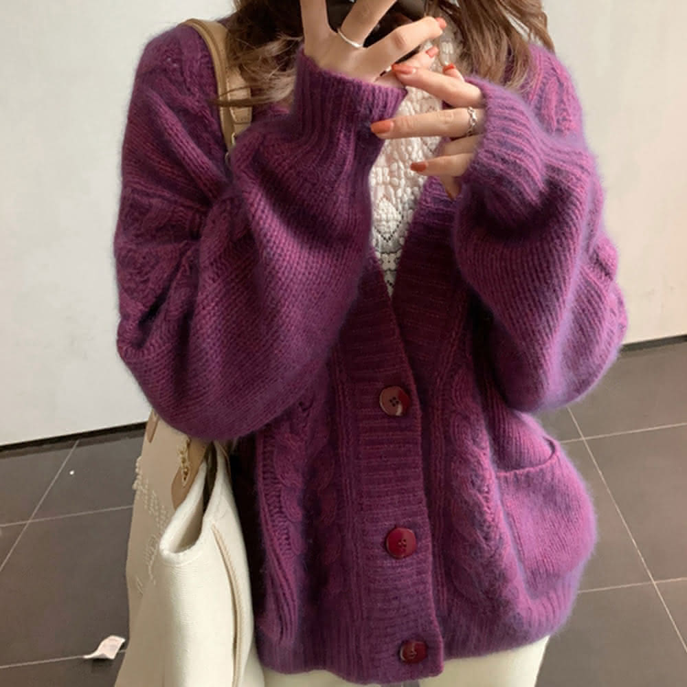 Mila米拉 ★現貨 大麻花寬鬆粗針織外套針織衫/長袖/秋冬
