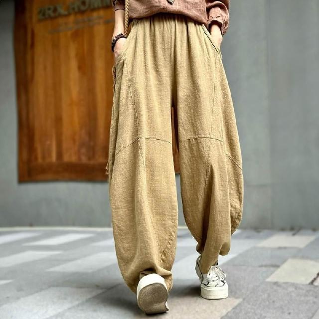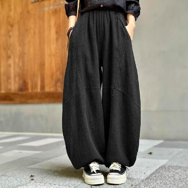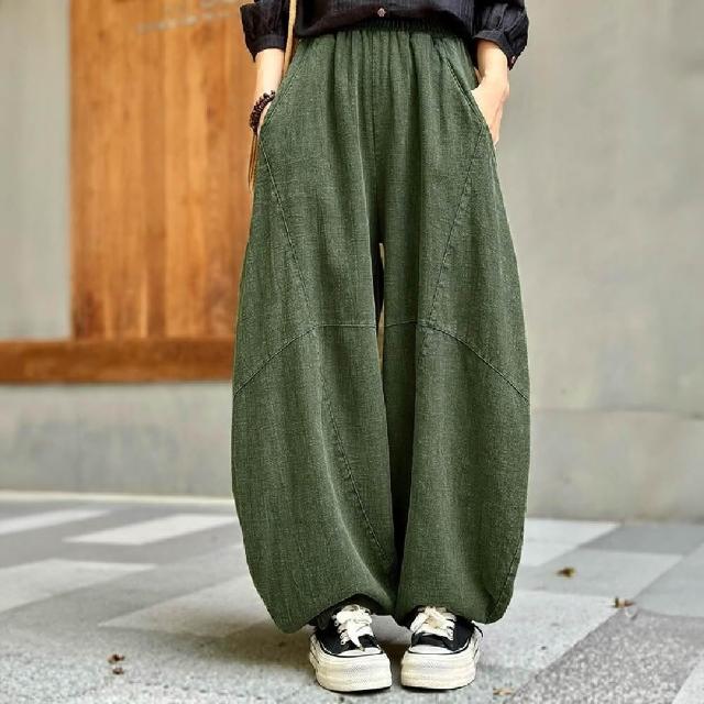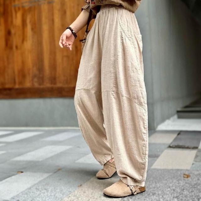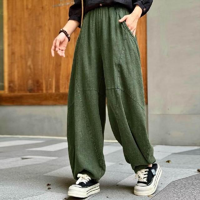 Mila米拉 ★鬆緊棉麻寬鬆燈籠褲(女裝/褲子/長褲/寬褲)