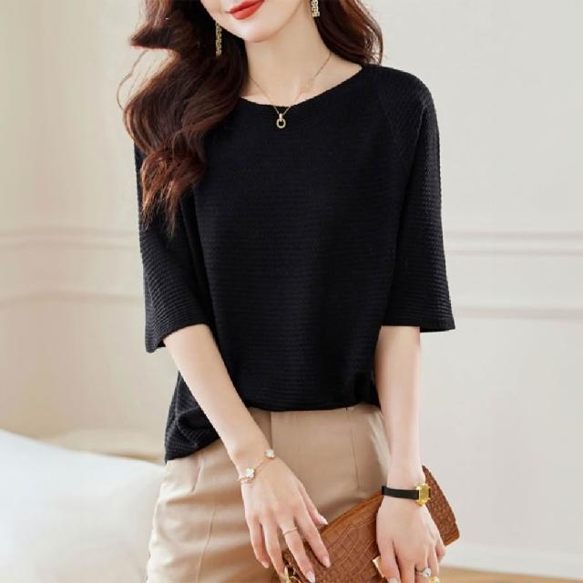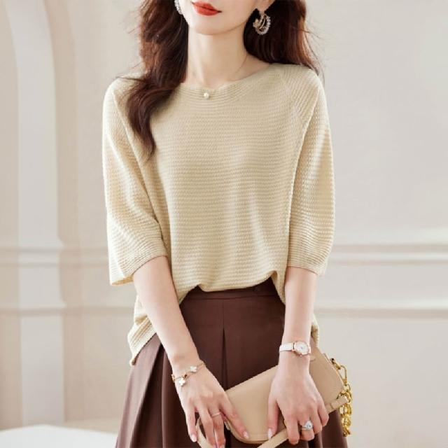 Mila米拉 ★ 一字領針織薄款上衣(春秋/女上衣/七分袖/針織衫)
