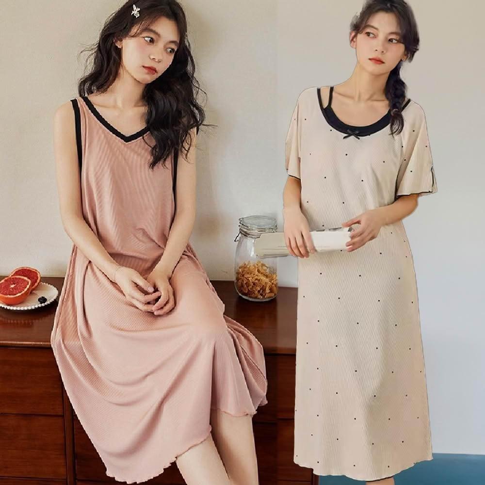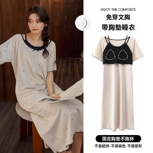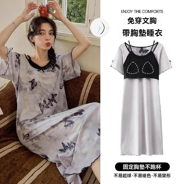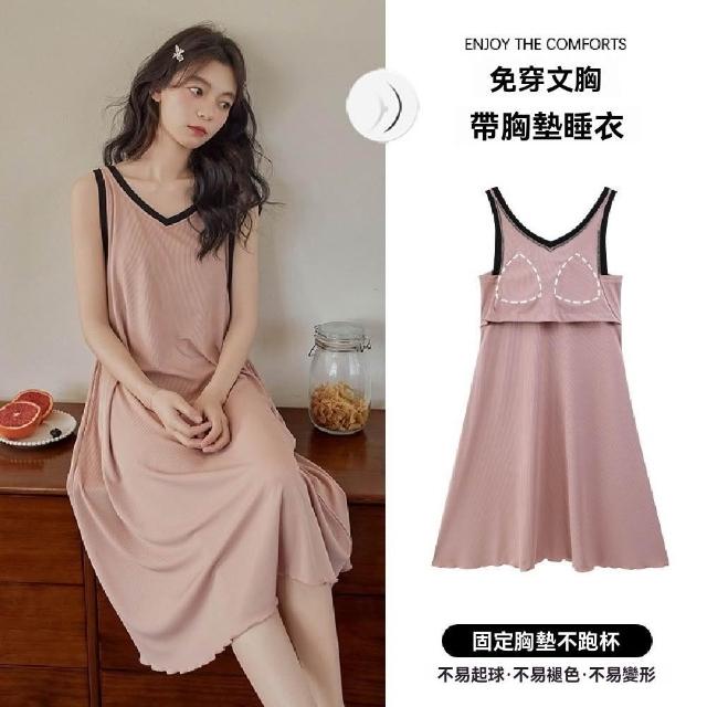 Mila米拉 ★帶胸墊冰絲涼爽居家長裙(女睡衣/家居服/連身睡衣/睡袍)