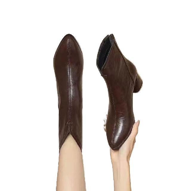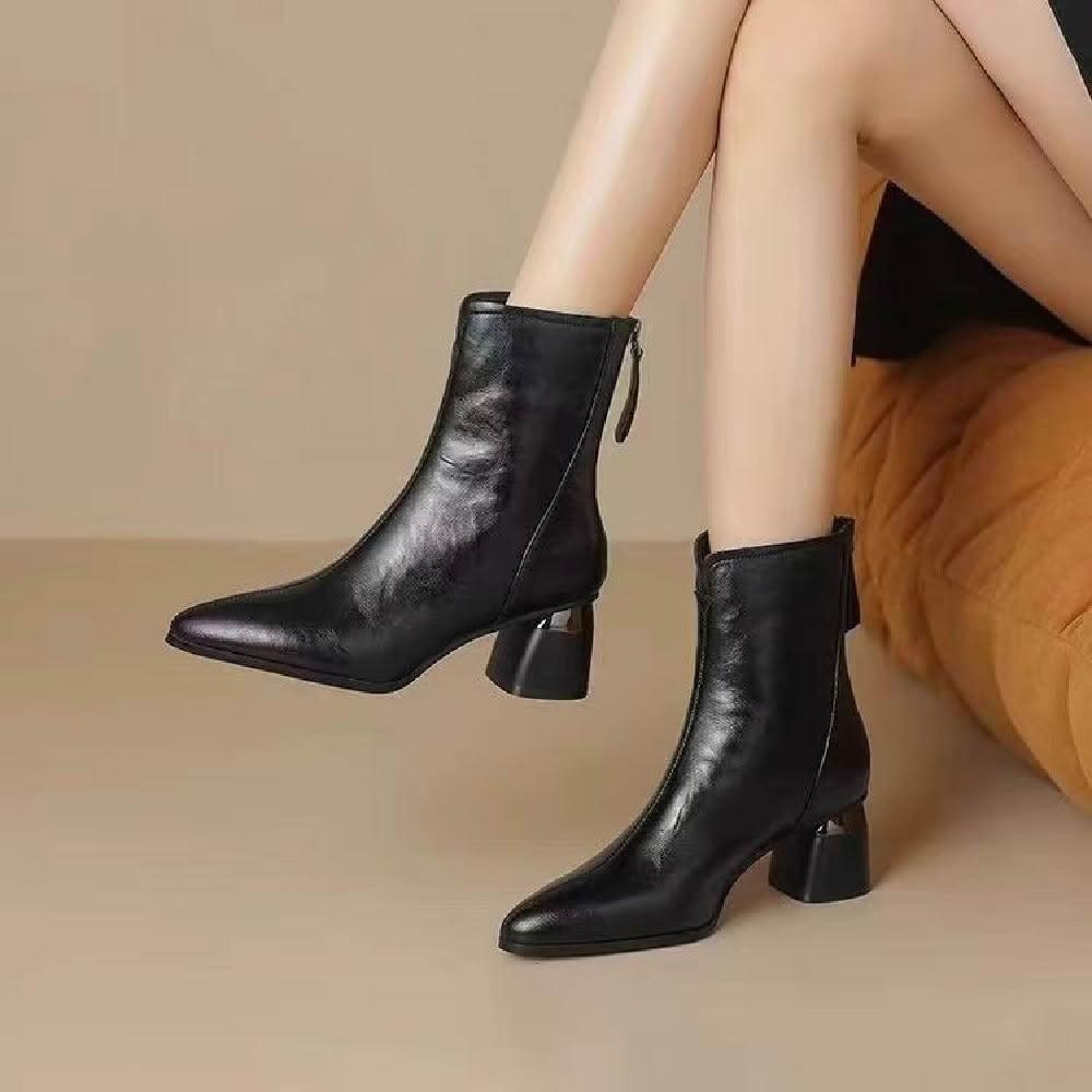 Mila米拉 ★粗跟尖頭韓系中筒靴短靴(女靴/低筒靴/跟鞋/靴子)