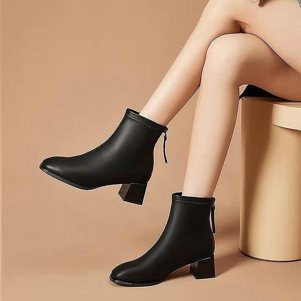 Mila米拉 ★法式優雅粗跟短靴(女靴/低筒靴/馬丁靴/靴子)