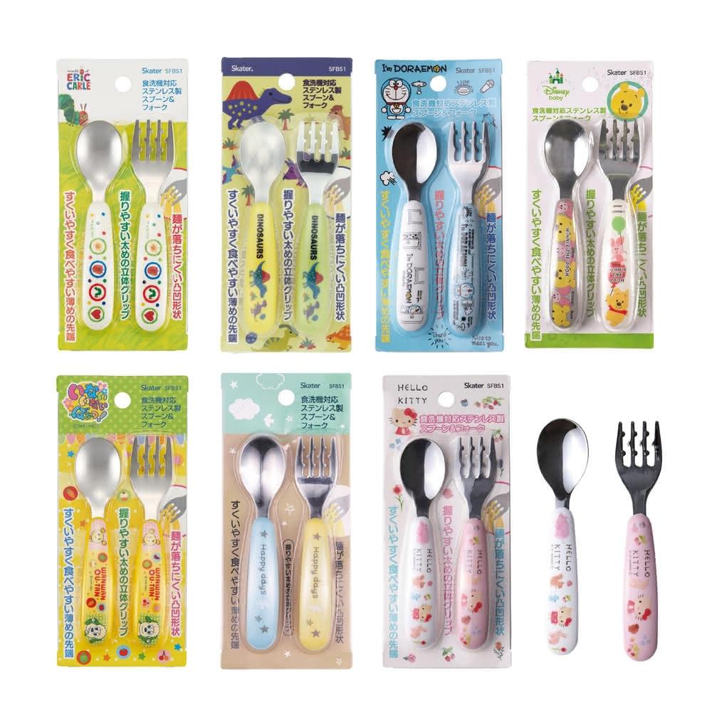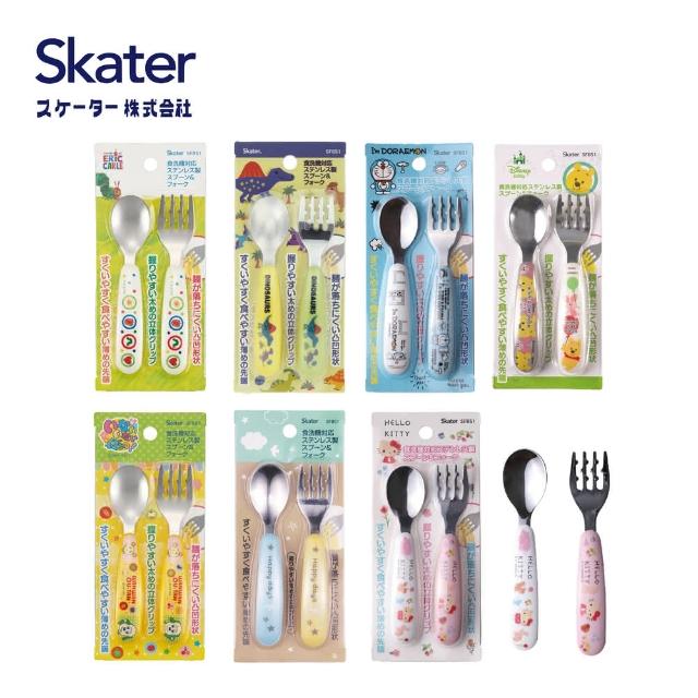 Skater日本進口 不銹鋼 兒童餐具組 湯匙+叉子彎形把手 適合幼兒抓握