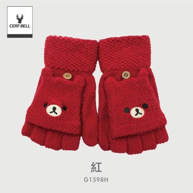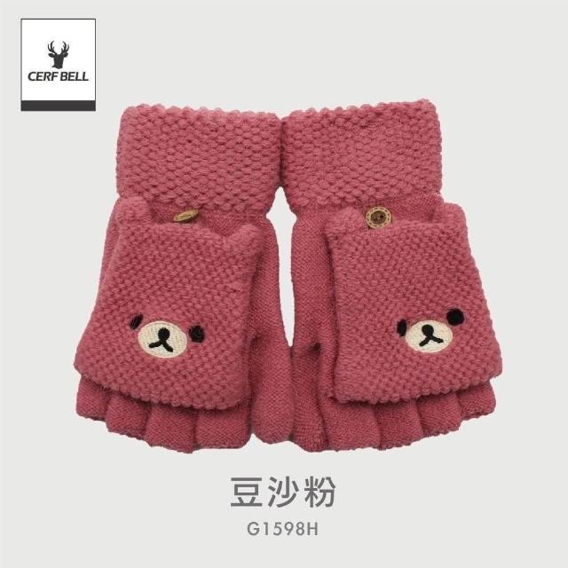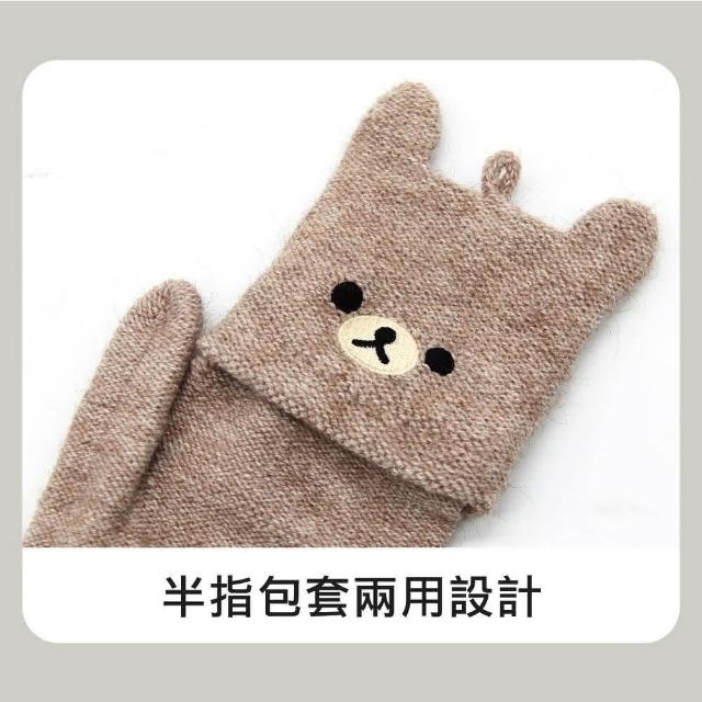 瑟夫貝爾體溫魔術師丨MIT台灣製 女士小熊刺繡半指翻蓋釣魚手套 保暖透氣針織毛線手套