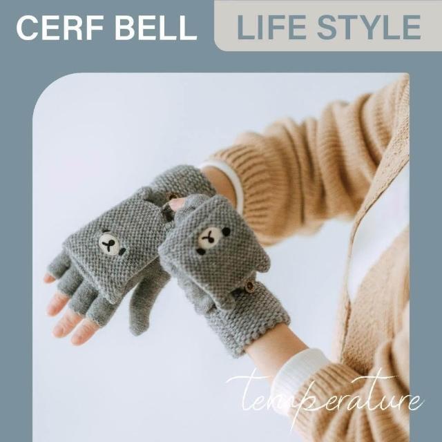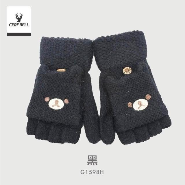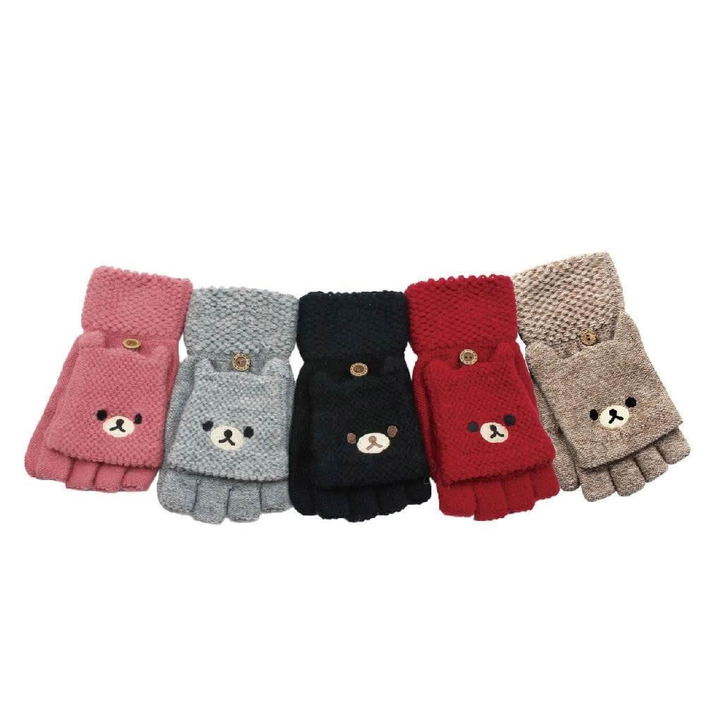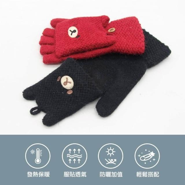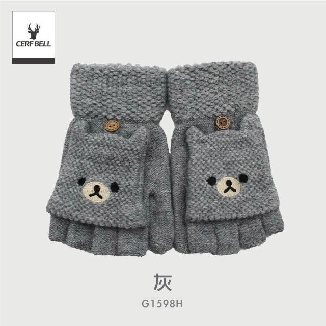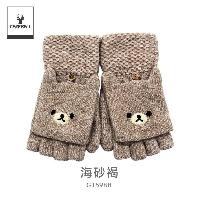 瑟夫貝爾體溫魔術師丨MIT台灣製 女士小熊刺繡半指翻蓋釣魚手套 保暖透氣針織毛線手套