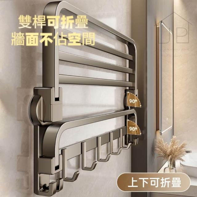 毛巾架 太空鋁上下折疊浴巾架50cm 浴室置物架 浴室收納架 雙層置物架 JEI商城