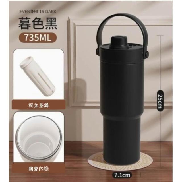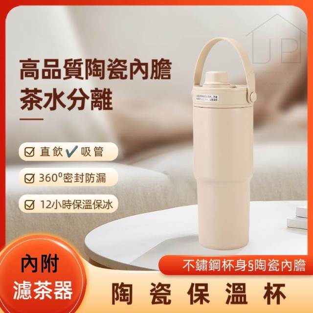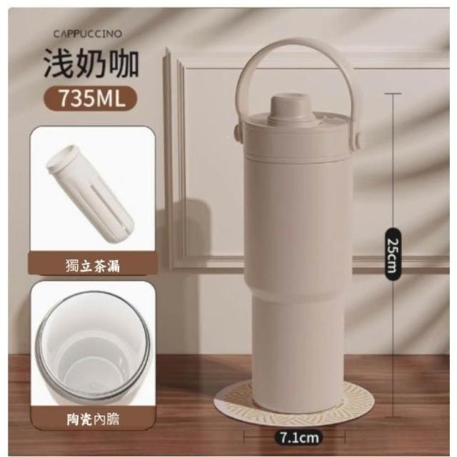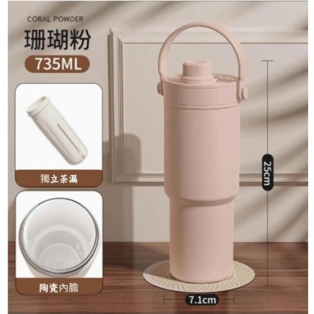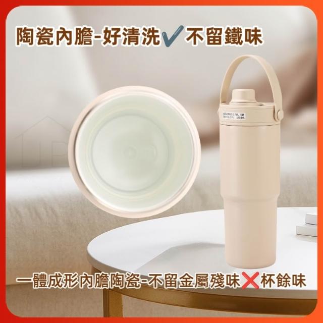 保溫杯 陶瓷內膽保溫杯735ML 玻璃吸管保溫杯 咖啡隨行杯 陶瓷 保溫杯 JEI商城