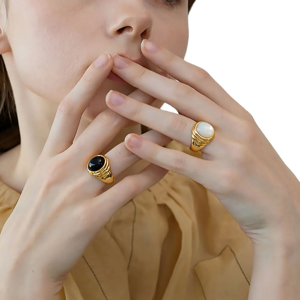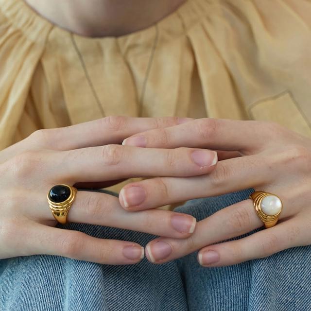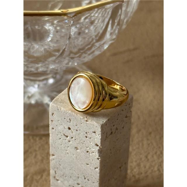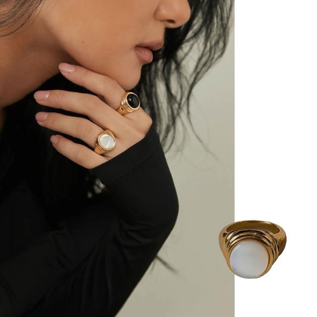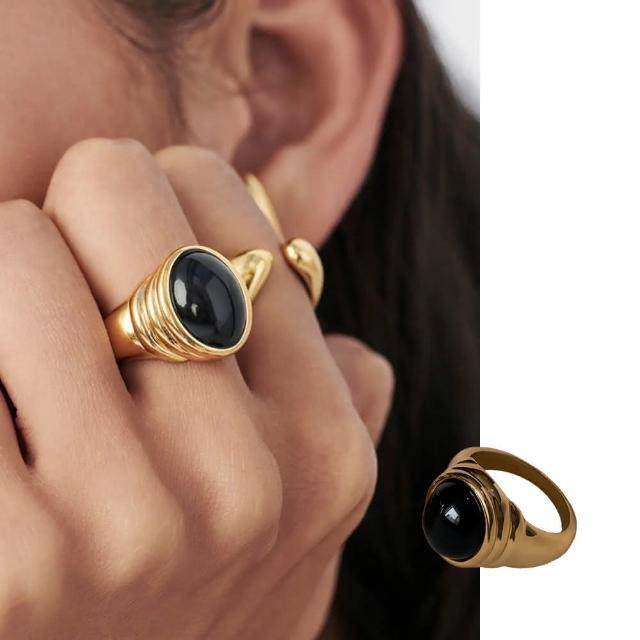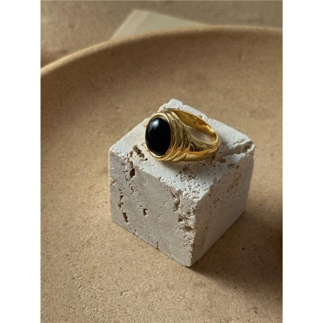 [lacarpe]復古橢圓戒指(母貝|黑瑪瑙|銅鍍金|歐美款)