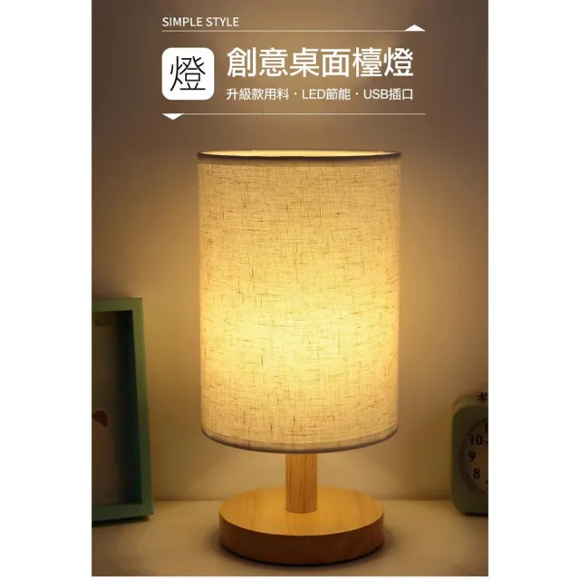 好物臻選北歐布藝USB實木床頭燈檯燈 布藝檯燈 復古 實木 桌燈 小夜燈 床頭燈 led