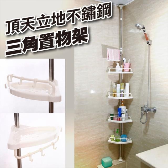 好物臻選頂天立地不銹鋼三角置物架浴室置物架 轉角置物架 自由伸縮 浴室三角架