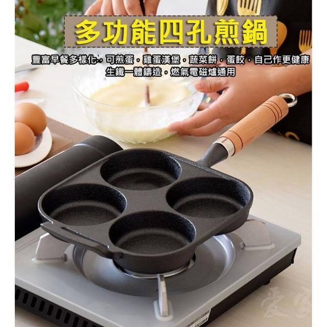 好物臻選無塗層鑄鐵四格煎蛋煎餃鍋-4入組煎蛋神器 多孔煎蛋鍋 荷包蛋神器 不沾鍋設計