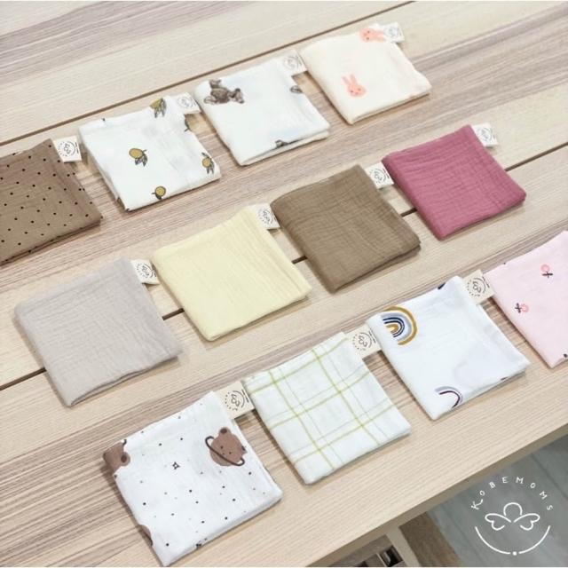 kobemoms台灣製紗布口水巾(純棉小方巾 手帕 熊熊紗布巾 皺皺紗布巾 紗布巾 洗澡巾 紗布口水巾)