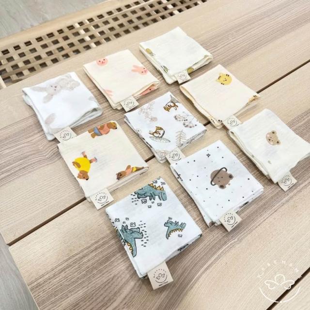 kobemoms台灣製紗布口水巾(純棉小方巾 手帕 熊熊紗布巾 皺皺紗布巾 紗布巾 洗澡巾 紗布口水巾)