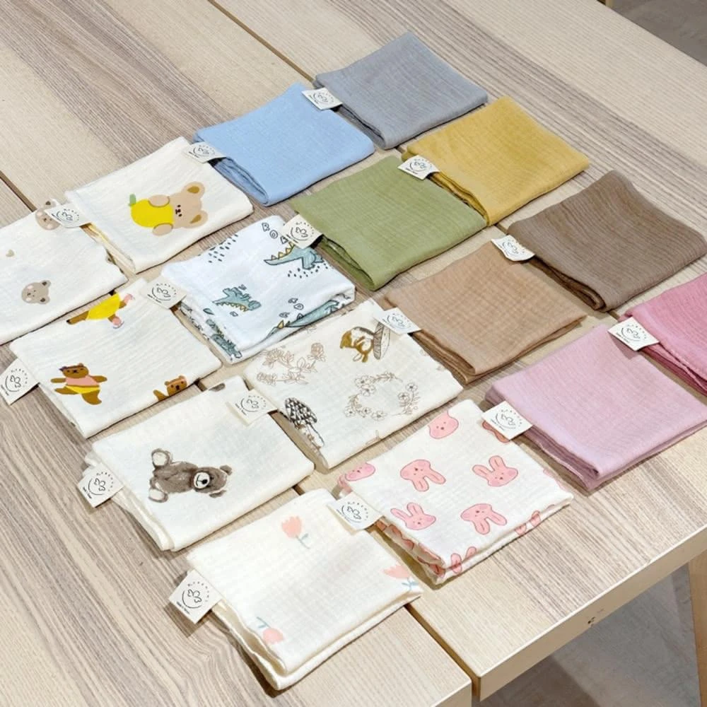 kobemoms台灣製紗布口水巾(純棉小方巾 手帕 熊熊紗布巾 皺皺紗布巾 紗布巾 洗澡巾 紗布口水巾)