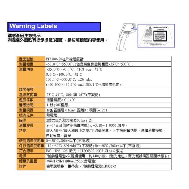 HIOKI3700 20 紅外線溫度槍(-60~550℃ 非接觸式雙點雷射量測 溫度計 測溫槍)
