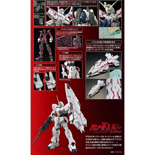 BANDAI 萬代鋼普拉 限定生產 BANDAI 鋼彈UC RG 1/144 UNICORN GUNDAM 獨角獸鋼彈 漫畫版 DE盾