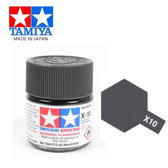 TAMIYA鋼普拉 現貨 田宫模型漆 TAMIYA 81506 X-10 X10 模型專用 水性漆 亮光漆 槍鐵色 光澤 10ml
