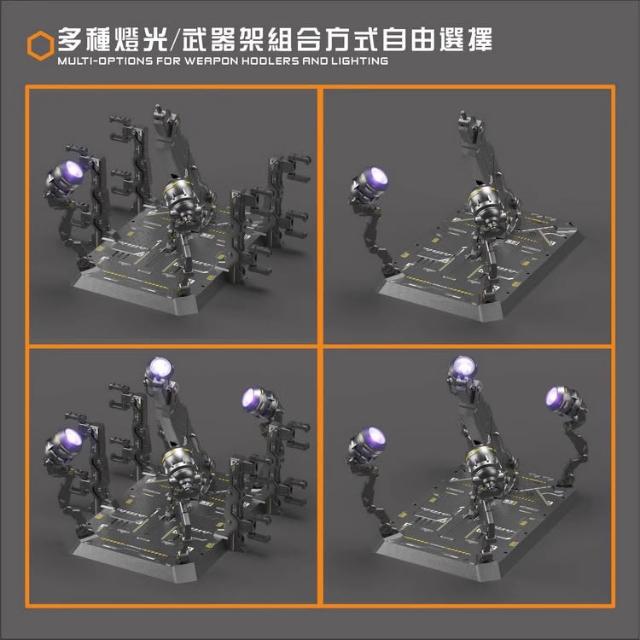 鋼普拉現貨 大林模型 鋼彈 多功能格納庫 武器庫 展示台 支架底座 MG HG RG MB HIRM 附燈組 水貼紙