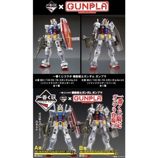 BANDAI 萬代鋼普拉 BANDAI 鋼彈一番賞 B賞 MG 1/100 RX-78-2 GUNDAM Ver.3.0 彩透 初鋼