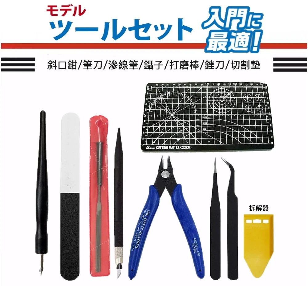 鋼普拉現貨 模型組裝 新手工具組 斜口鉗 斜口剪 滲線筆 彎夾 直夾 拆解器 筆刀 打磨棒 銼刀 切割墊 大全配