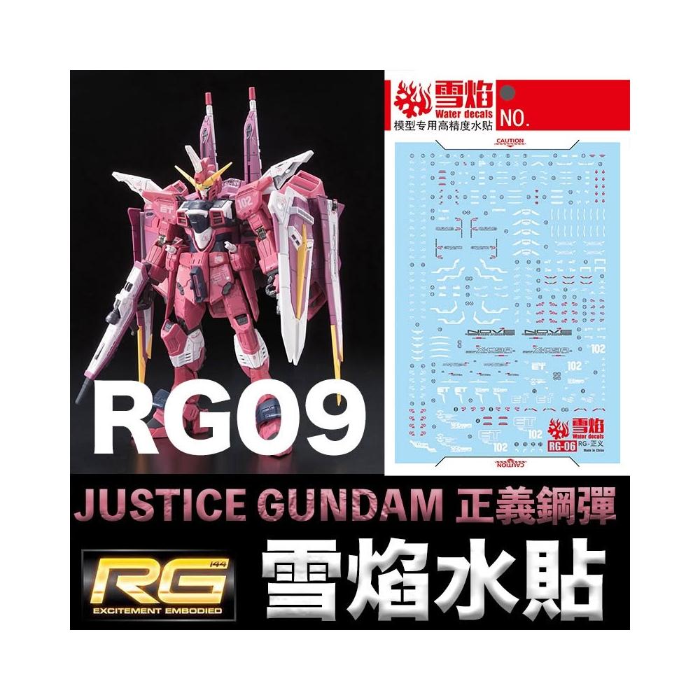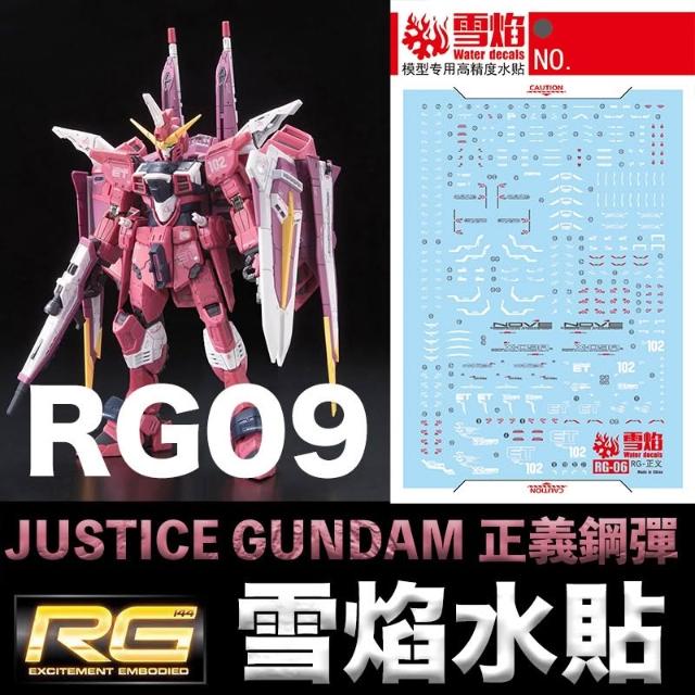 BANDAI 萬代【鋼普拉】雪焰水貼 螢光版 BANDAI 鋼彈SEED RG 1/144 #09 JUSTICE GUNDAM 正義鋼彈