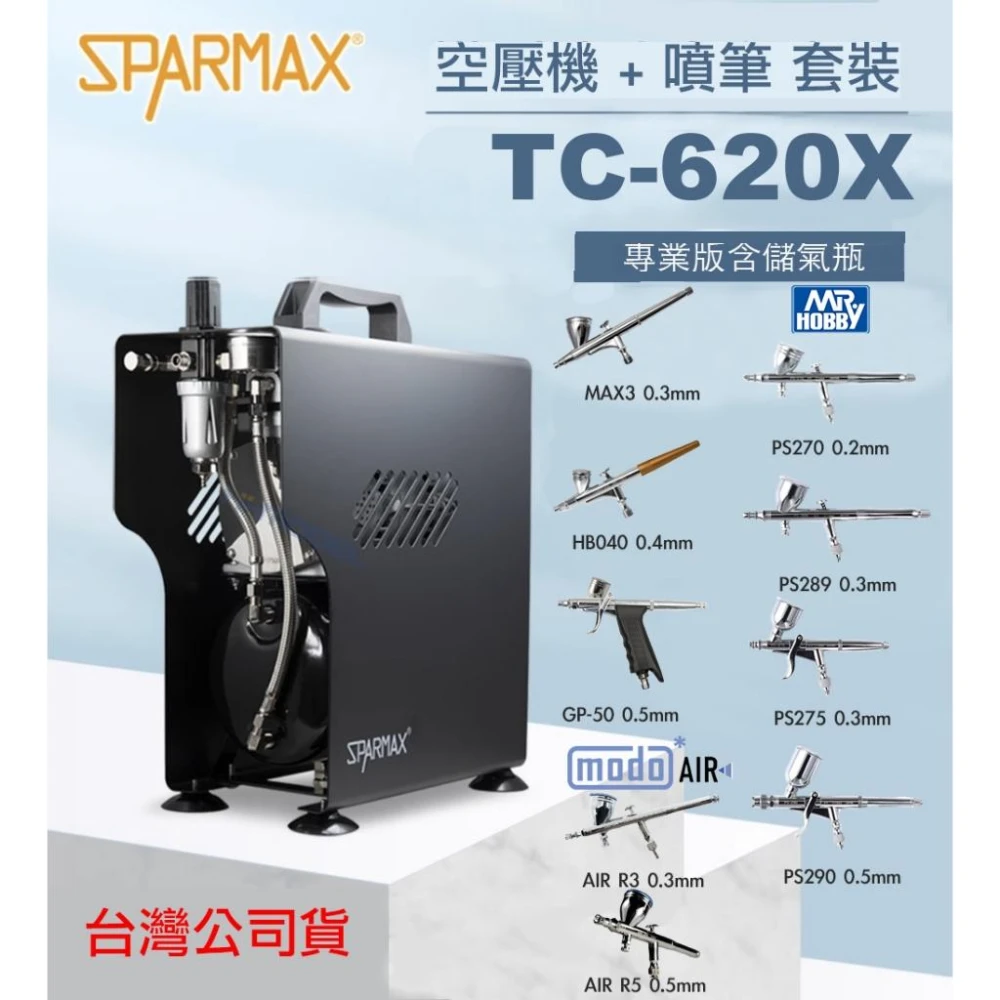 GSI鋼普拉 漢弓 Sparmax TC-620X 專業空壓機 + 0.2mm 0.3mm GSI MODO 噴筆套組