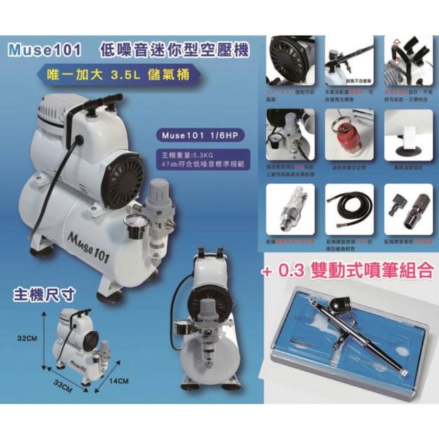 鋼普拉現貨 Muse 101 空壓機 + 0.3mm 噴筆 1/6hp 初學者套組 模型 噴漆 改造 噴畫 美甲