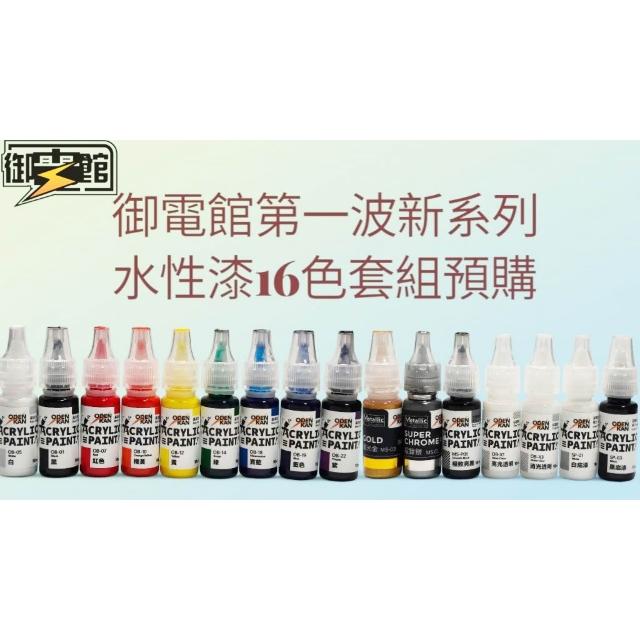 鋼普拉現貨 御電館 水性漆 基本色套組 電鍍色 糖果色 透明漆 補土 金屬色 保護漆 模型噴漆 滲線 筆塗 10ml
