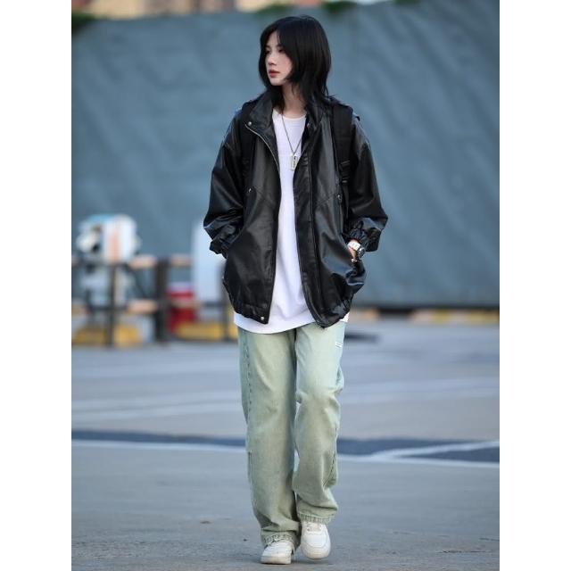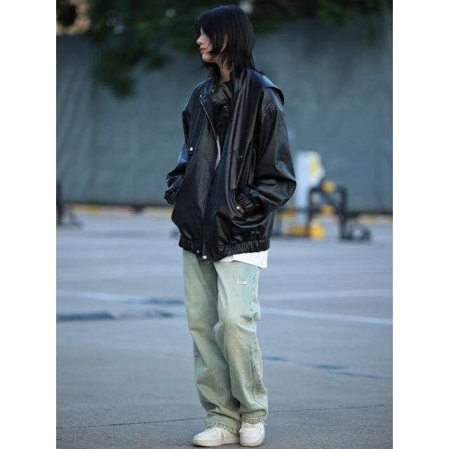 秋冬復古黑色皮衣外套棉服pu皮美式機車服