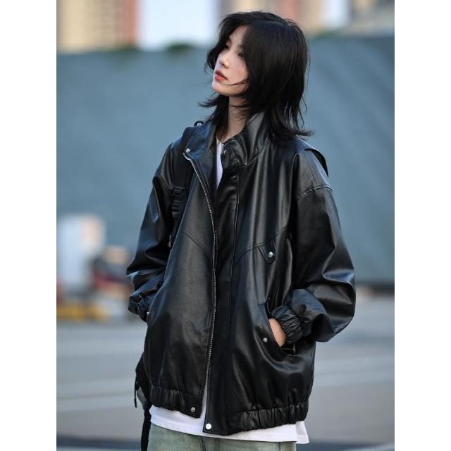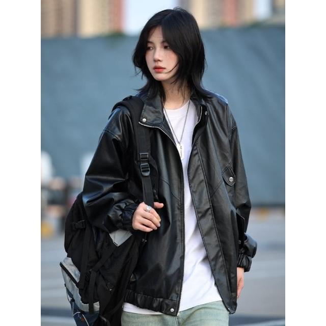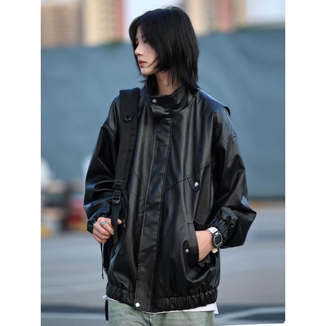 秋冬復古黑色皮衣外套棉服pu皮美式機車服