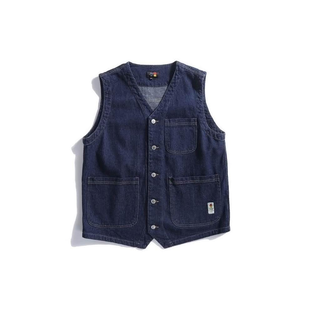 夏季搭配復古v領多口袋工人牛仔馬甲背心