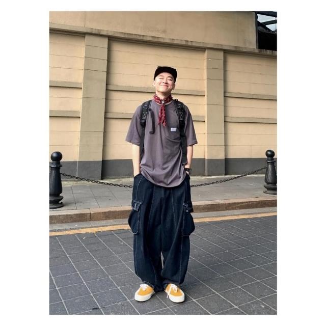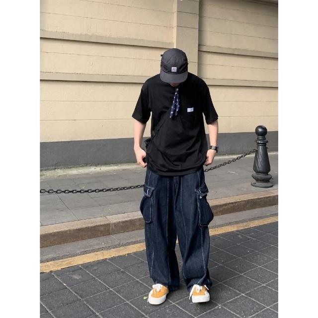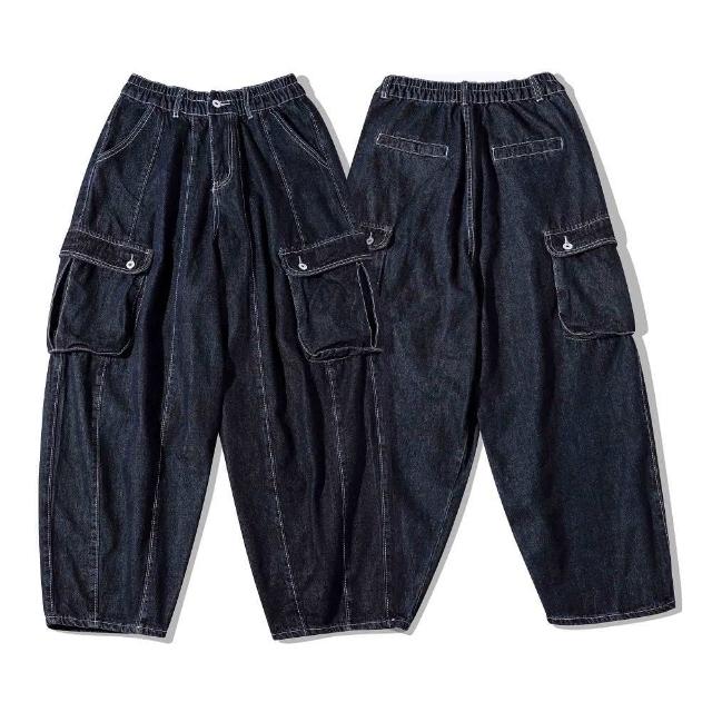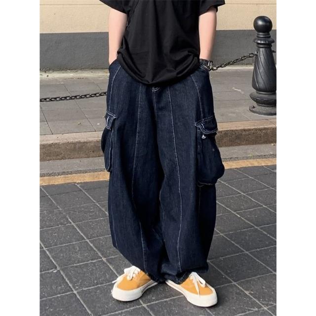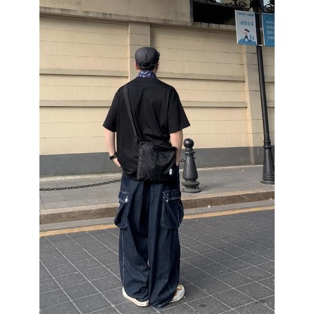 復古寬鬆大口袋寬褲男女日系工裝牛仔褲