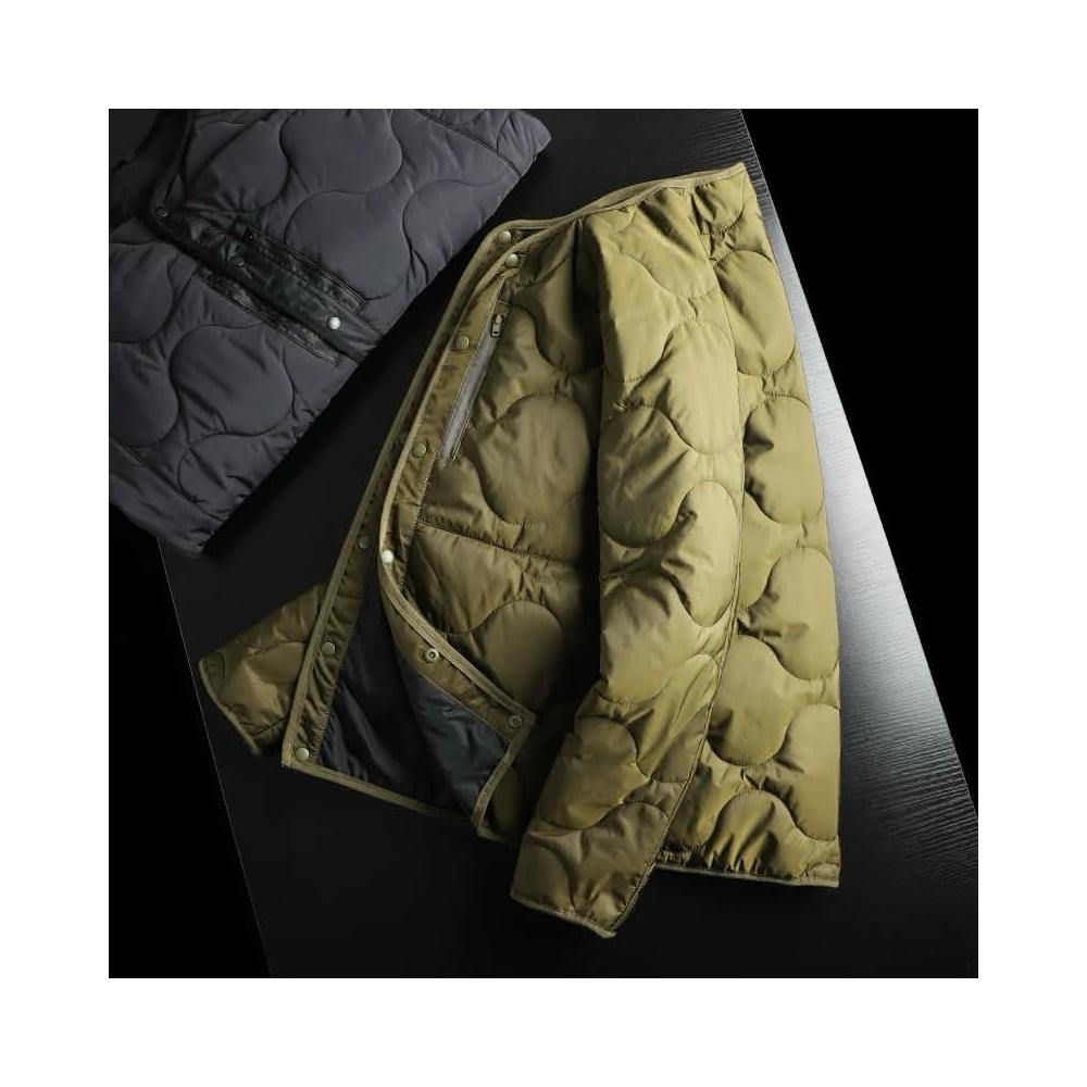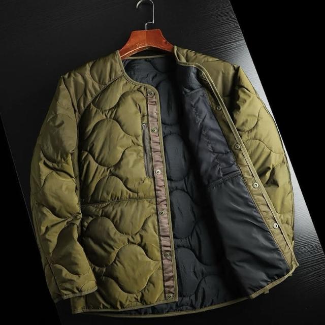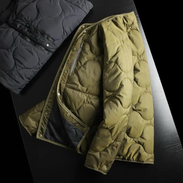 日系高街輕奢 秋冬男士圓領純色絎棉輕薄保暖短款休閒棉服外套