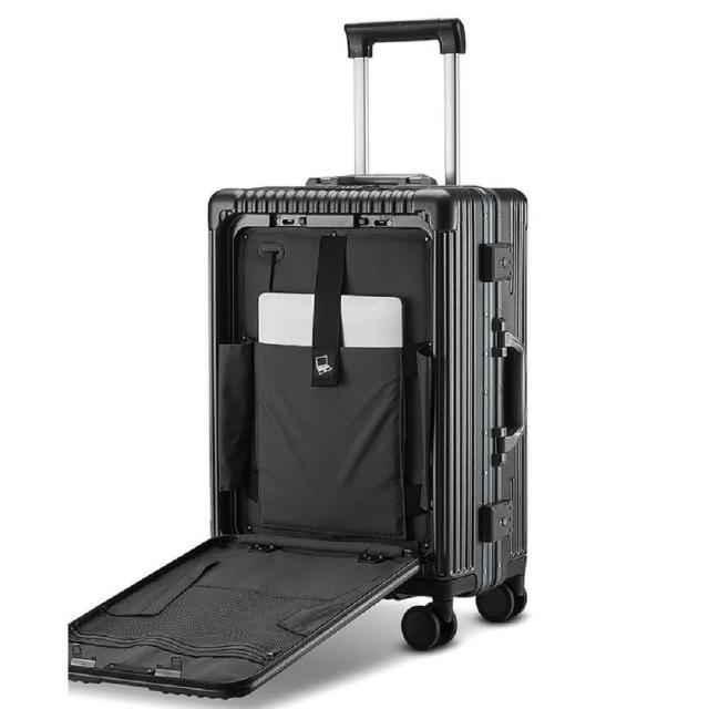 oneceotw24吋 行李箱 登機箱 前置開口 百寶袋(多功能 杯架 手機支架 充電 海關密碼鎖 靜音輪)