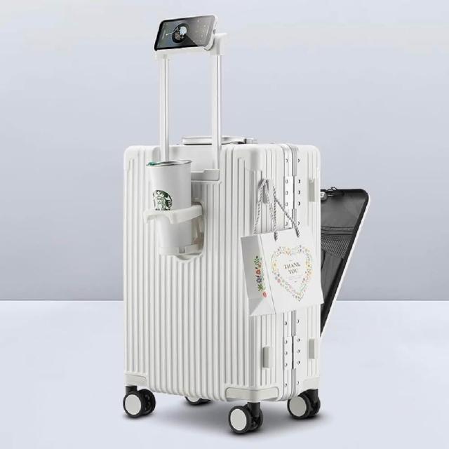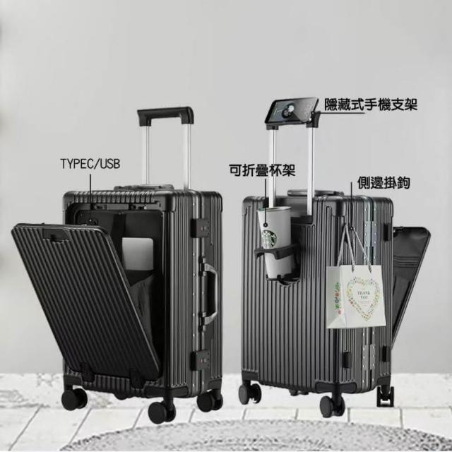 oneceotw24吋 行李箱 登機箱 前置開口 百寶袋(多功能 杯架 手機支架 充電 海關密碼鎖 靜音輪)