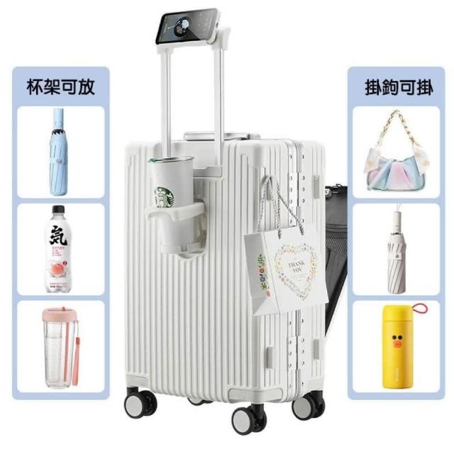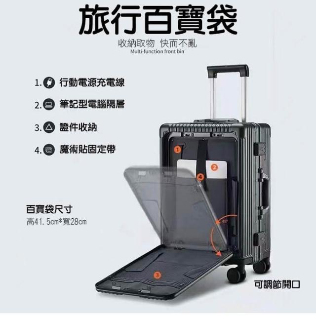 oneceotw24吋 行李箱 登機箱 前置開口 百寶袋(多功能 杯架 手機支架 充電 海關密碼鎖 靜音輪)