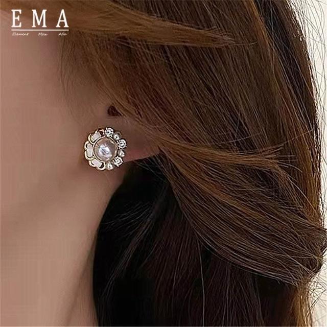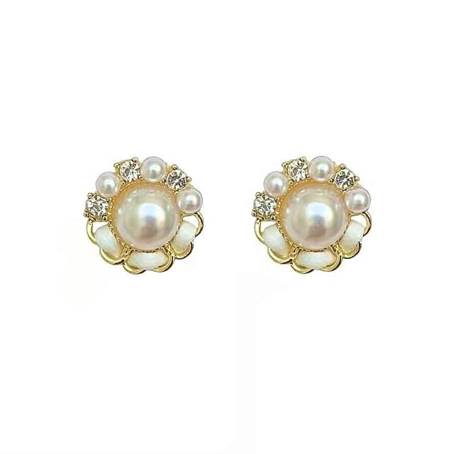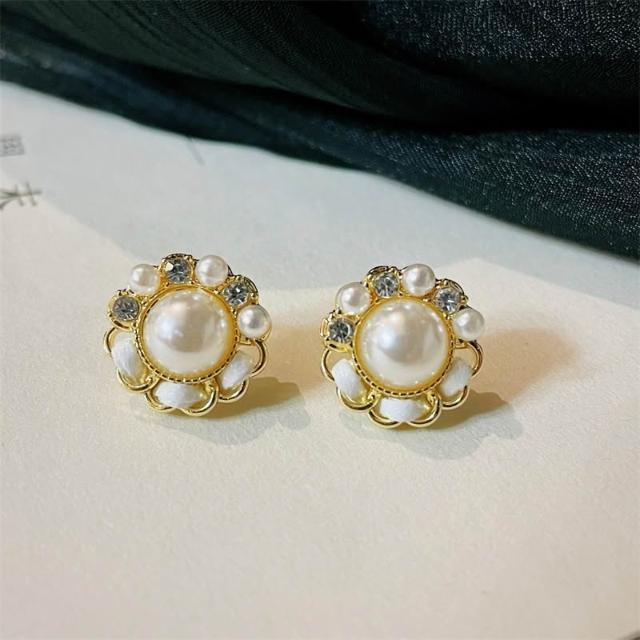 臺灣現貨!!韓國 小香風耳環 珍珠耳環 碎鑽 甜美 質感 日常 百搭 氣質 耳釘 設計 時尚 耳環 精緻 女飾 飾品
