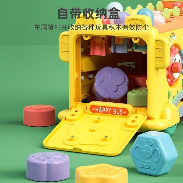 媽媽買 多功能巴士車 幼兒玩具 打地鼠 拔蘿蔔 敲琴 模擬時鐘 模擬方向盤 益智玩具 多面體