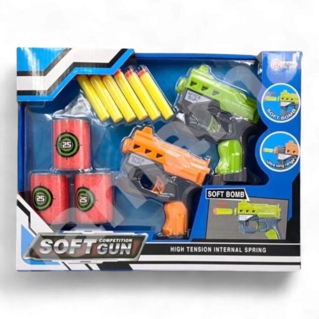 媽媽買 兒童軟彈槍 雙槍組 EVA軟彈射擊玩具 安全手動上膛單發設計 附標靶訓練組 親子對戰室內外玩