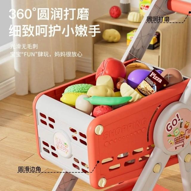 媽媽買 兒童購物推車 超市家家酒手推車組 仿真蔬果收納玩具 幼兒角色扮演 親子互動必備