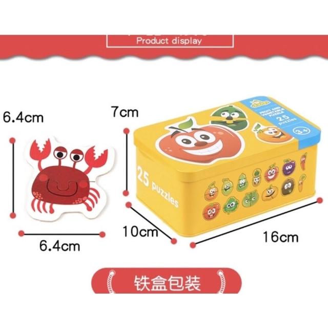 幼兒大塊木質拼圖 配對啟蒙早教玩具 附鐵盒收納 動物水果交通認知 兒童益智學習 入門首選