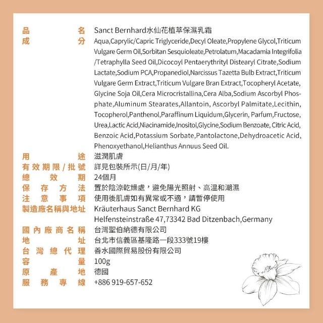 Sanct Bernhard 聖伯納德德國百年草本 水仙花植萃保濕乳霜X3入(100ml/入 撫平細紋)
