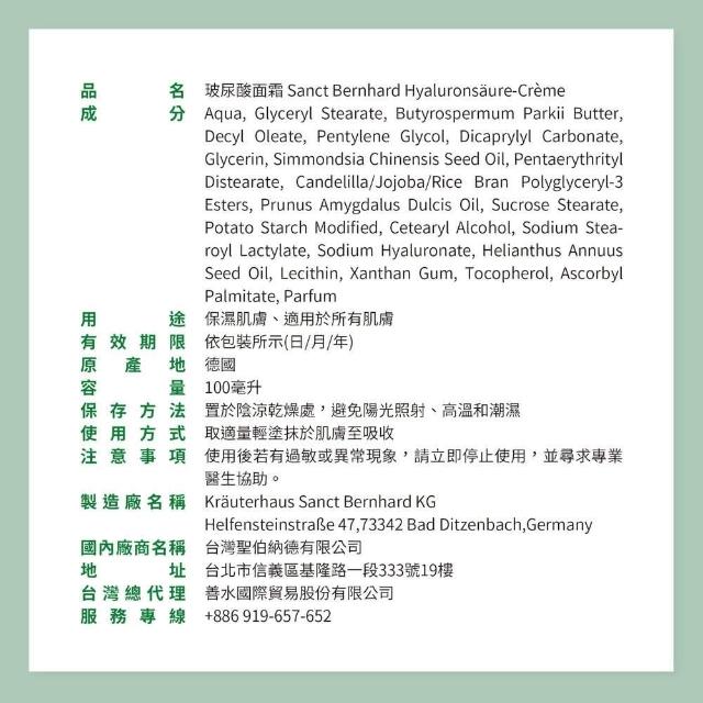 Sanct Bernhard 聖伯納德德國百年草本玻尿酸保濕面霜X3入(100ml 玻尿酸+乳木果油)
