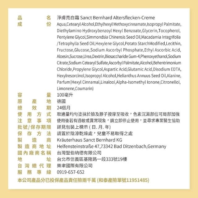 Sanct Bernhard 聖伯納德德國百年草本 淨膚亮白霜 (100ml 滋潤保濕 )