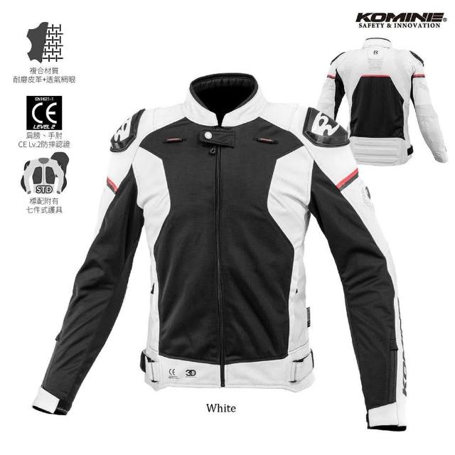 KOMINE日本品牌 騎士皮革+大網眼防摔外套 防摔衣 JK-167 White / Black 七件式護具 台灣納普司總代理