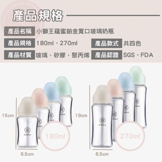 Simba 小獅王辛巴防脹氣寬口玻璃奶瓶(小獅王 寬口奶瓶 玻璃奶瓶 防脹氣奶嘴 180ml)