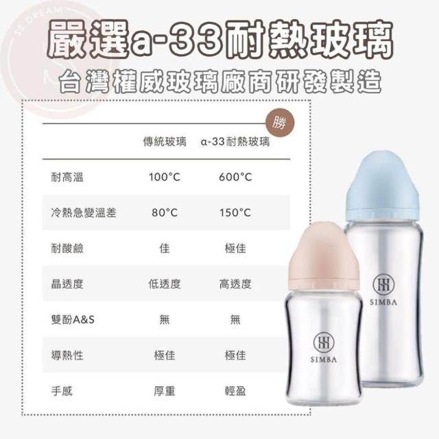 Simba 小獅王辛巴防脹氣寬口玻璃奶瓶(小獅王 寬口奶瓶 玻璃奶瓶 防脹氣奶嘴 180ml)