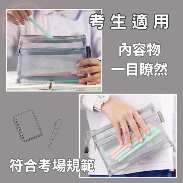 無印風網紗筆袋 大容量 透明鉛筆盒 收納袋 筆盒 文具收納 辦公會計用品 學生文具袋 網格拉鏈袋