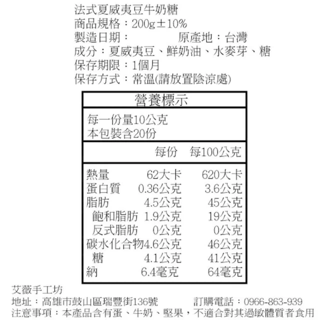 艾薇手工坊夏威夷豆法式牛奶糖 200g袋裝