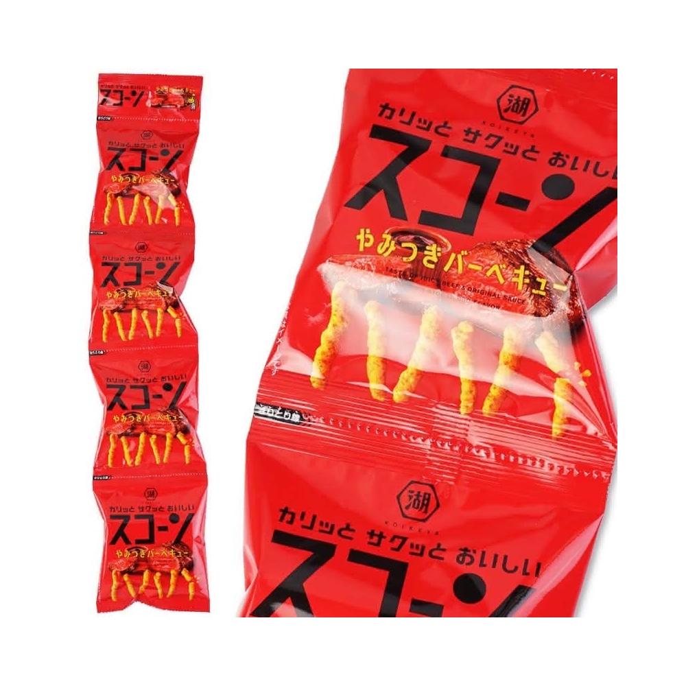 KOIKEYA 湖池屋日本 Koikeya湖池屋 BBQ烤肉口味玉米棒餅乾 15g*4連包 (BBQ玉米棒 和風烤肉餅乾 日本餅乾 進口零食)